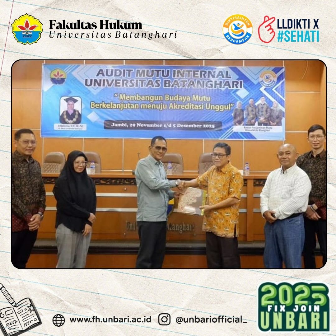 Jambi, 29 November 2025 – Fakultas Hukum Universitas Batanghari (UNBARI) turut berpartisipasi dalam rangkaian Pembukaan Pelaksanaan Audit Mutu Internal (AMI) Universitas Batanghari Tahun 2025 yang mengusung tema “Membangun Budaya Mutu Berkelanjutan Menuju Akreditasi Unggul.” Kegiatan ini menjadi langkah strategis dalam memperkuat komitmen fakultas terhadap peningkatan mutu pendidikan tinggi. Fakultas Hukum UNBARI diwakili oleh Wakil Dekan...Read More