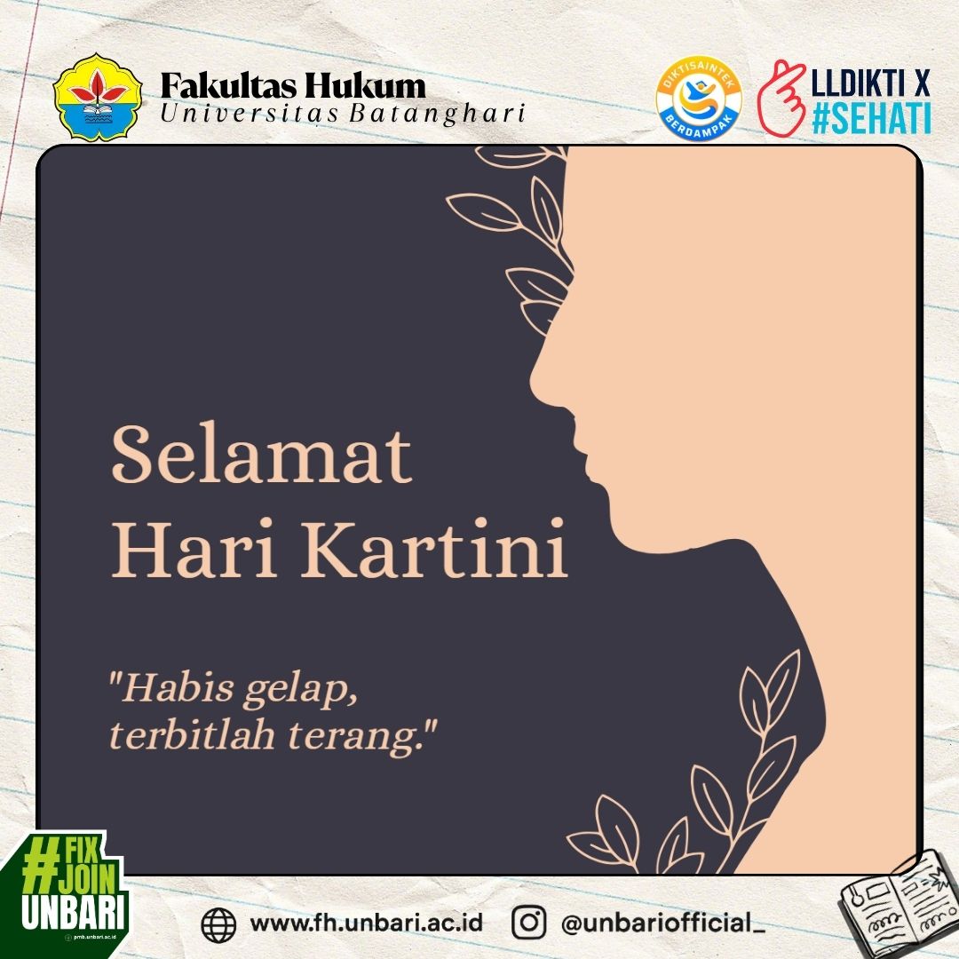Jambi, 21 April 2026 – Dekan bersama seluruh Sivitas Akademika Fakultas Hukum Universitas Batanghari (FH UNBARI) menyampaikan ucapan Selamat Hari Kartini kepada seluruh perempuan Indonesia. Peringatan ini menjadi momentum untuk mengenang semangat juang R.A. Kartini dalam memperjuangkan pendidikan, kesetaraan, dan kemajuan perempuan. Nilai-nilai perjuangan beliau terus relevan sebagai inspirasi bagi kita semua untuk senantiasa berani...Read More
