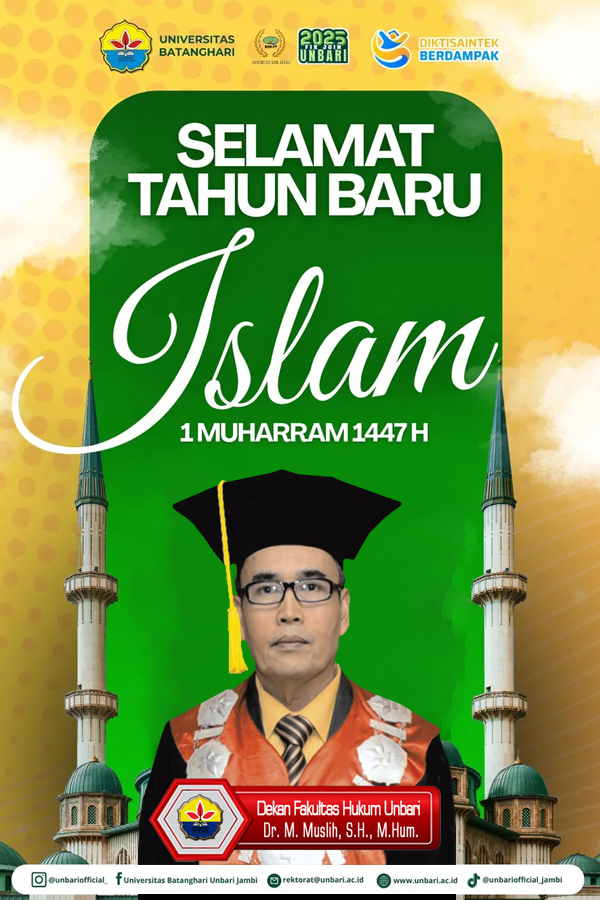 Dekan Dr. M. Muslih, S.H., M.Hum. beserta Sivitas Akademika Fakultas Hukum Universitas Batanghari (UNBARI) Jambi mengucapkan selamat Hari Raya Idul Adha 1446 Hijriah (6 Juni 2025). Semoga Allah SWT menerima setiap amal dan pengorbanan kita. Semangat dalam ketaatan dan hikmah berbagi dengan sesama.Read More