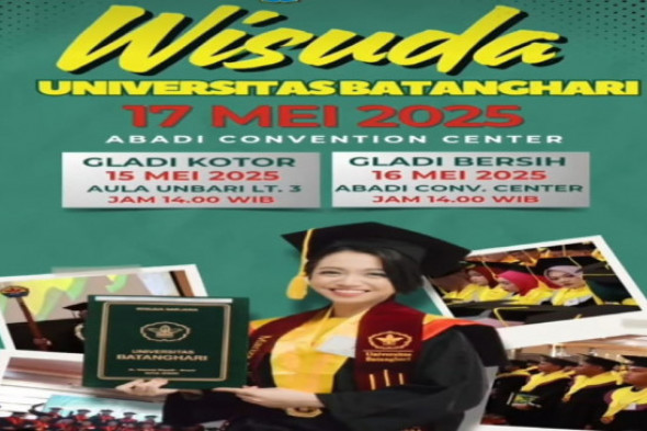 Berdasarkan kalender akademik tahun 2024/2025, Universitas Batanghari (UNBARI) Jambi akan menggelar Wisuda pada tanggal 17 Mei 2025 nanti. Upacara resmi yang melibatkan seluruh komponen Sivitas Akademika UNBARI dan diikuti segenap keluarga calon wisudawan dan wisudawati ini dibuka dengan celebration awal di tingkat Fakultas yang dikenal dengan Yudisium. Pelepasan resmi sejumlah mahasiswa, dimana menanggalkan status mereka sebagai pelajar...Read More
