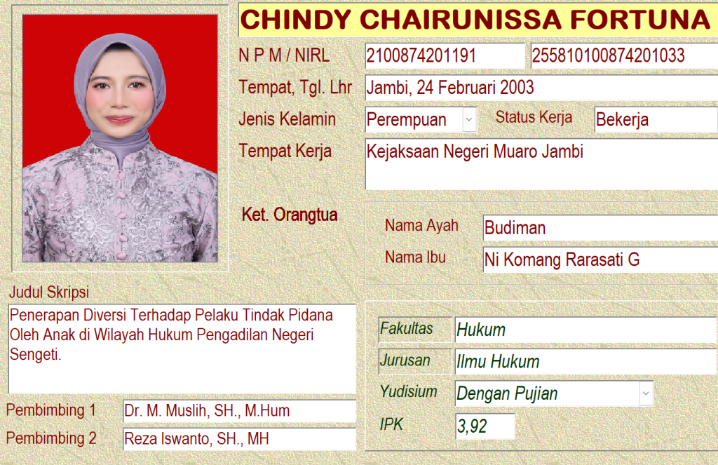 Lulusan Terbaik Fakultas Hukum Prodi Ilmu Hukum (S1) yaitu