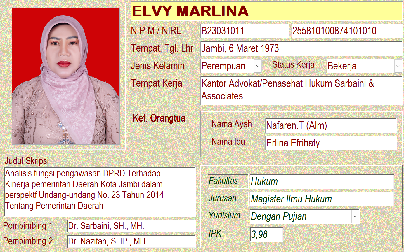 - Judul Tugas Akhir (Analisis fungsi pengawasan DPRD Terhadap Kinerja pemerintah Daerah Kota Jambi dalam perspektf Undang-undang No. 23 Tahun 2014 Tentang Pemerintah Daerah)